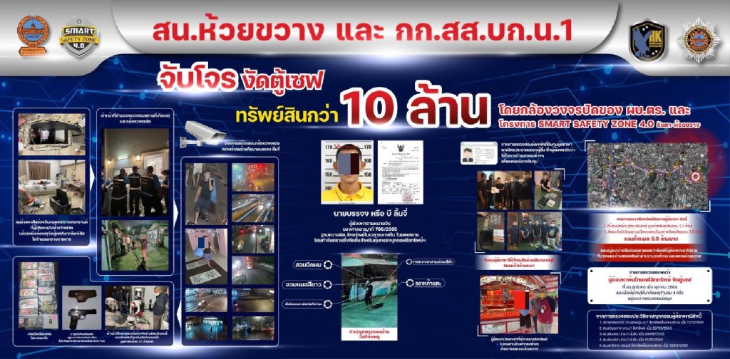 เซฟตี้โซน 4.0 รัชดา-ห้วยขวาง จนสามารถรวบรวมพยานหลักฐานขออนุมัติหมายจับคนร้ายที่ก่อเหตุ