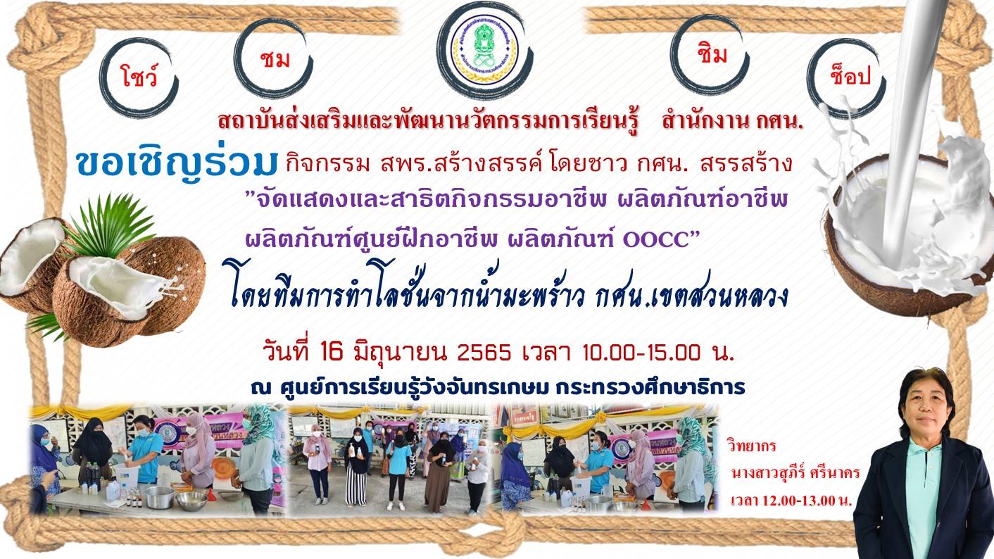 วันที่ 16 มิ.ย. “การทำโลชั่นจากน้ำมันมะพร้าว” จาก กศน.เขตสวนหลวง