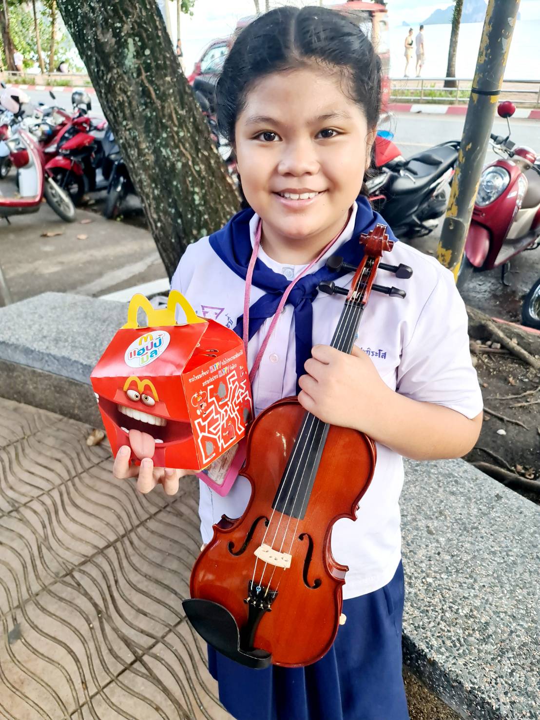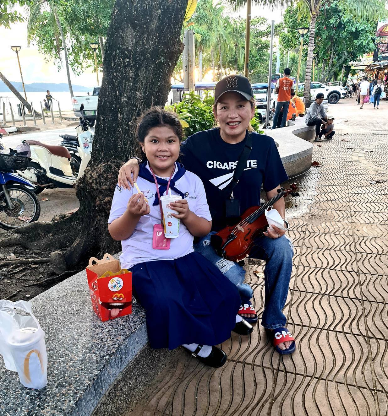 ศิริพร จงศิริ ผู้อำนวยการใหญ่ผลิตรายการคืนคุณให้แผ่นดิน สถานีวิทยุโทรทัศน์กองทัพบก มีภาระกิจสำคัญที่จังหวัดกระบี่ช่วงเย็นได้เดินเล่นที่หาดอ่าวนาง กระบี่ เดินเล่นชายหาดอ่าวนาง บังเอิญเห็นน้องกำลังเล่นไวโอลินและตีขิมดนตรีไทย อยู่บริเวณริมหาดอ่าวนาง น้องชื่อมุกดา ปะกิระโส โรงเรียนอนุบาลกระบี่ กำลังศึกษาเล่าเรียนป.3ชื่อเล่น มุกดา มีบัตรประจำตัวแสดงความสามารถอย่างถูกต้อง คุณแม่แอบกระซิบว่า วันนี้วันเกิดน้องมุกดา ครบรอบ 9 ปีพอดี เอ๋จีงไปที่ร้าน แมคโดนัลด์อ่าวนาง ซื้อแมคโดนัลด์มอบให้เป็นของขวัญวันเกิดน้องมุกดาและน้องมุกดาบอกว่าของขวัญวันเกิดชิ้นแรกน้องมุกดามีความสุขและมีรอยยิ้มอย่างมีความสุขพร้อมตีขิมอนุรักษ์ความเป็นไทยมอบเพลงแสนรัก..นี่แหละเยาวชนไทยตัวอย่างเล่นดนตรีไทยเพื่อหาทุนการศึกษาและอนุรักษ์ดนตรีไทยรายการคืนคุณให้แผ่นดินขอยกย่องและขอชมเชย..อย่าลืมไปท่องเที่ยวจังหวัดกระบี่แวะทักทายน้องมุกดา นั่งฟังการเล่นดนตรีไทย ณ ริมชายหาดอ่าวนาง จังหวัดกระบี่