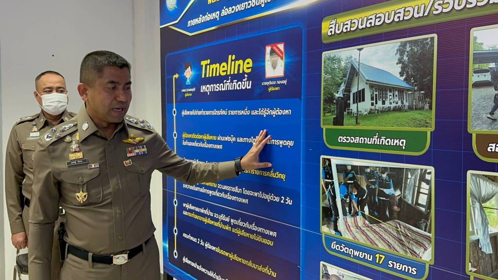 จากการสืบสวนทราบว่า นายจักรฯ เป็นนักเรียนและอยู่ในวงดนตรีของโรงเรียนแห่งหนึ่ง ได้รู้จักและติดต่อกับนายชุติเดชฯ หรือครูเทียม เนื่องจากเห็นว่าเป็นบุคคลมีชื่อเสียงและมีความน่าเชื่อถือ ต่อมาเมื่อวันที่ 16 ก.ย.65 นายจักรได้นัดหมายกับนายชุติเดชฯ หรือครูเทียม ว่าจะมารับที่บ้านในพื้นที่ อ.จักราช จ.นครราชสีมา เพื่อพาไปศึกษางาน และจะหางานให้ทำ โดยนายชุติเดชฯ หรือครูเทียม ได้ขับรถมารับแล้วพาไปที่ห้องพักในพื้นที่ ต.ยายแย้มวัฒนา อ.เฉลิมพระเกียรติ จ.บุรีรัมย์ จากนั้นได้กระทำอนาจารโดยการกอดจูบ ใช้มือจับอวัยวะเพศของผู้เสียหาย และพยายามซุกใบหน้าเข้าไปที่หว่างขา แต่ผู้เสียหายขัดขืน จึงไม่สามารถทำอะไรได้ และได้พาผู้เสียหายมาส่งที่บ้าน ต่อมานายจักรฯ จึงได้แจ้งให้ผู้ปกครองทราบ และขอความช่วยเหลือจากเจ้าหน้าที่ตำรวจ