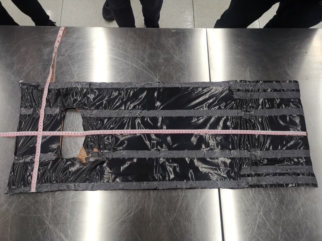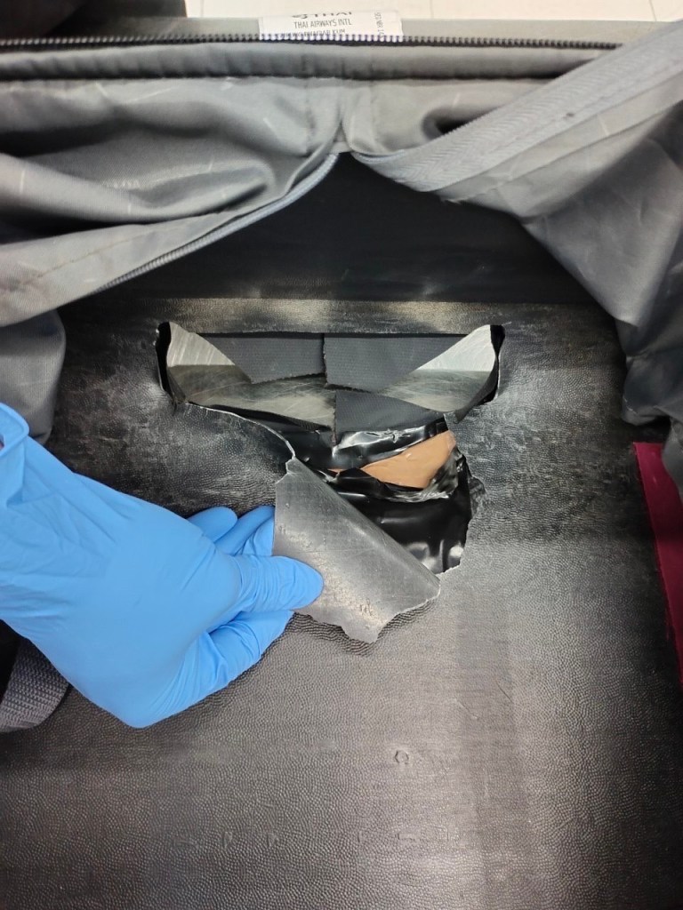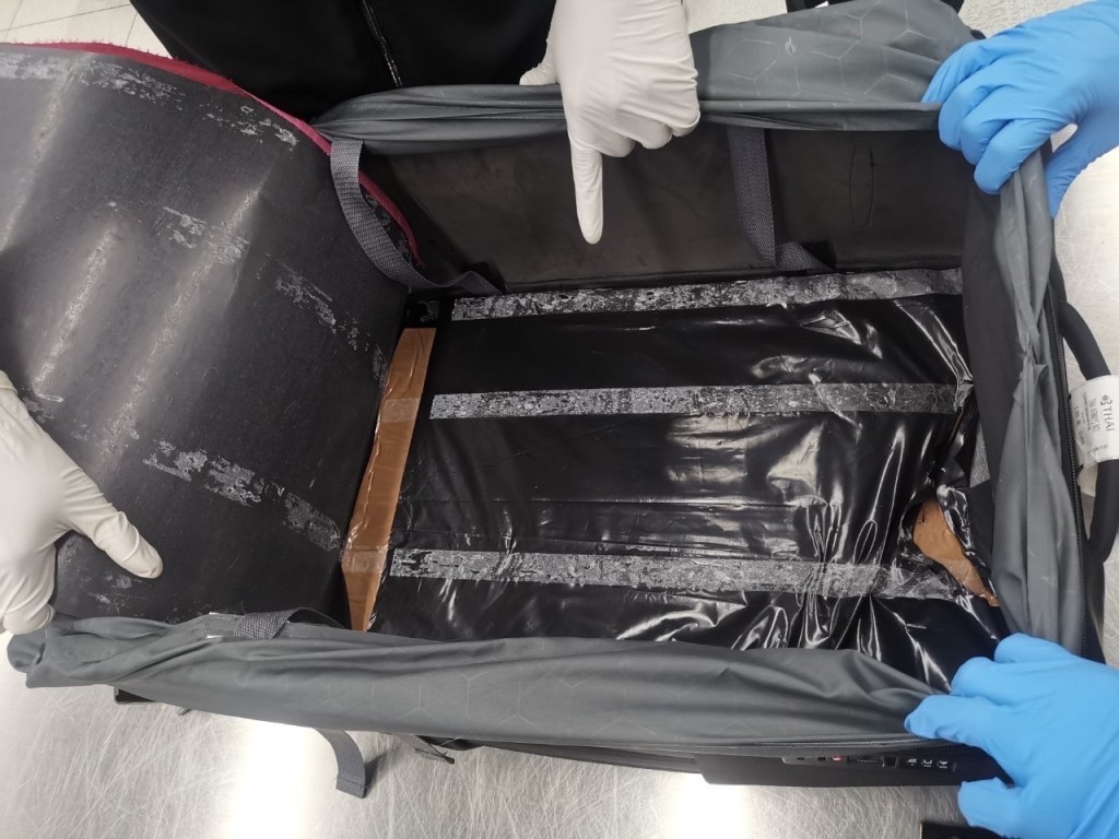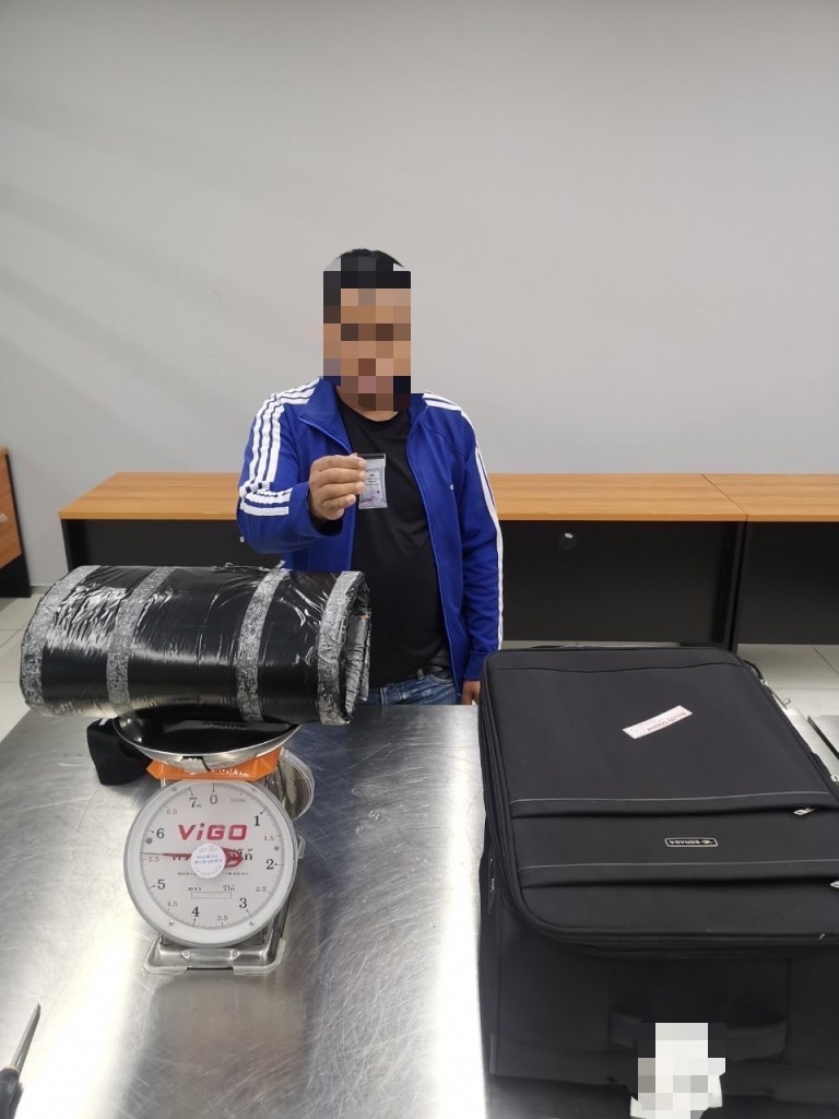 โดยเมื่อวันที่ 8 กุมภาพันธ์ 2566 เวลาประมาณ 18.45 น. เจ้าหน้าที่ศุลกากร สำนักงานตรวจของผู้โดยสารท่าอากาศยานสุวรรณภูมิ ร่วมกับเจ้าหน้าที่กองสืบสวนและปราบปรามได้ทำการวิเคราะห์ข้อมูลโดยใช้ หลักบริหารความเสี่ยง และทำการตรวจค้น ชายสัญชาติเนปาล เดินทางมาจากท่าอากาศยานนานาชาติตริภูวัน กรุงกาฐมาณฑุ สหพันธ์สาธารณรัฐประชาธิปไตยเนปาล ของวันที่ 8 กุมภาพันธ์ 2566 ถึงปลายทางท่าอากาศยานสุวรรณภูมิ ต.หนองปรือ อ.บางพลี จ.สมุทรปราการ ประเทศไทย เวลาประมาณ 17.30 น. ของวันที่ 8 กุมภาพันธ์ 2566 เนื่องจาก มีข้อมูลการเดินทางจากประเทศต้นทางที่มีความเสี่ยง เมื่อพบผู้โดยสารขณะเดินผ่านเข้าช่องตรวจศุลกากรไม่มีสิ่งของต้องสำแดง (ช่องเขียว) ทางออก B ห้องโถงผู้โดยสารขาเข้าระหว่างประเทศ พร้อมกระเป๋าสัมภาระ เจ้าหน้าที่ฯ จึงให้ผู้โดยสารนำกระเป๋าสัมภาระผ่านเข้าเครื่องเอกซเรย์ เพื่อทำการเอกซเรย์กระเป๋าสัมภาระทรงอ่อนสีดำ มีล้อลาก จำนวน 1 ใบ จากการวิเคราะห์ภาพถ่ายเอกซเรย์เบื้องต้น พบความผิดปกติในกระเป๋าสัมภาระ เมื่อทำการเปิดตรวจค้นโดยละเอียด พบช่องลับซึ่งได้จัดทำขึ้นมาเป็นพิเศษบริเวณพื้นกระเป๋า เมื่อใช้ไขควงเปิดช่องลับ พบแผ่นสี่เหลี่ยมผืนผ้าอัดแข็ง มีขนาด 98 x 38 เซนติเมตร จำนวน 1 แผ่น พันด้วยเทปกาวสีน้ำตาลถูกห่อหุ้มด้วยพลาสติก สีดำ เจ้าหน้าที่จึงได้ใช้มีดคัตเตอร์กรีดแผ่นวัตถุต้องสงสัยดังกล่าว พบว่ามีลักษณะเป็นแผ่นสี่เหลี่ยมผืนผ้าอัดแข็งสีน้ำตาลเข้ม จึงได้ทดสอบวัตถุสีน้ำตาลเข้มดังกล่าวด้วยน้ำยาทดสอบเบื้องต้น ผลการทดสอบจากสารสีใสได้กลายเป็นสารสีม่วง เชื่อได้ว่าวัตถุต้องสงสัยเป็นยางกัญชา ยาเสพติดให้โทษประเภท 5 จึงได้ทำการชั่งน้ำหนักยางกัญชาดังกล่าวต่อหน้าผู้ต้องหา น้ำหนักรวมสิ่งห่อหุ้มประมาณ 5.6 กิโลกรัม มูลค่า 560,000 บาท เจ้าหน้าที่ ชุดจับกุม จึงทำบันทึกจับกุมและนำส่งพนักงานสอบสวน สภ.ท่าอากาศยานสุวรรณภูมิเพื่อดำเนินคดีต่อไป