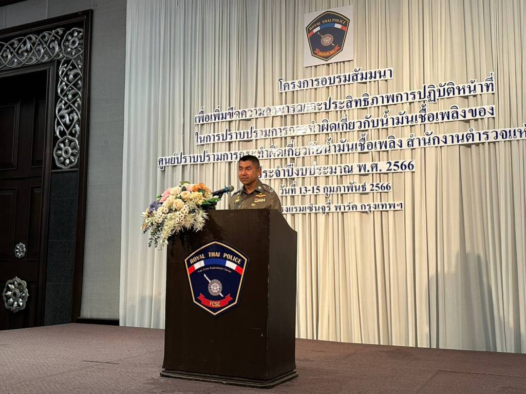 วันนี้ (14 ก.พ.66) เวลา 10.00 น. พล.ต.อ.สุรเชษฐ์ หักพาล รอง ผบ.ตร. ในฐานะ ผอ.ศูนย์ปราบปรามการกระทำผิดเกี่ยวกับน้ำมันเชื้อเพลิง สำนักงานตำรวจแห่งชาติ (ศปนม.ตร.) ได้เป็นประธานในพิธีการเปิดโครงการอบรมสัมมนาเพื่อเพิ่มขีดความสามารถและประสิทธิภาพการปฏิบัติหน้าที่ในการปราบปรามการกระทำผิดเกี่ยวกับน้ำมันเชื้อเพลิง โดยมีนายวุฒิทัต ตันติเวส รองอธิบดีกรมธุรกิจพลังงาน, นายมงคล สุดโต ผอ.ส่วนควบคุมระบบปฏิบัติการป้องกันและปราบปราม กรมสรรพสามิต และ นางนันทวดี วีระวัฒน์เดช ผอ.ส่วนมาตรฐานและพัฒนาการจัดเก็บภาษี กรมสรรพสามิต ร่วมการพิธีเปิดดังกล่าว ซึ่งจัดขึ้น ณ โรงแรมเซ็นจูรี่ พาร์ค เขตราชเทวี กรุงเทพฯ ระหว่างวันที่ 13-15 ก.พ.66