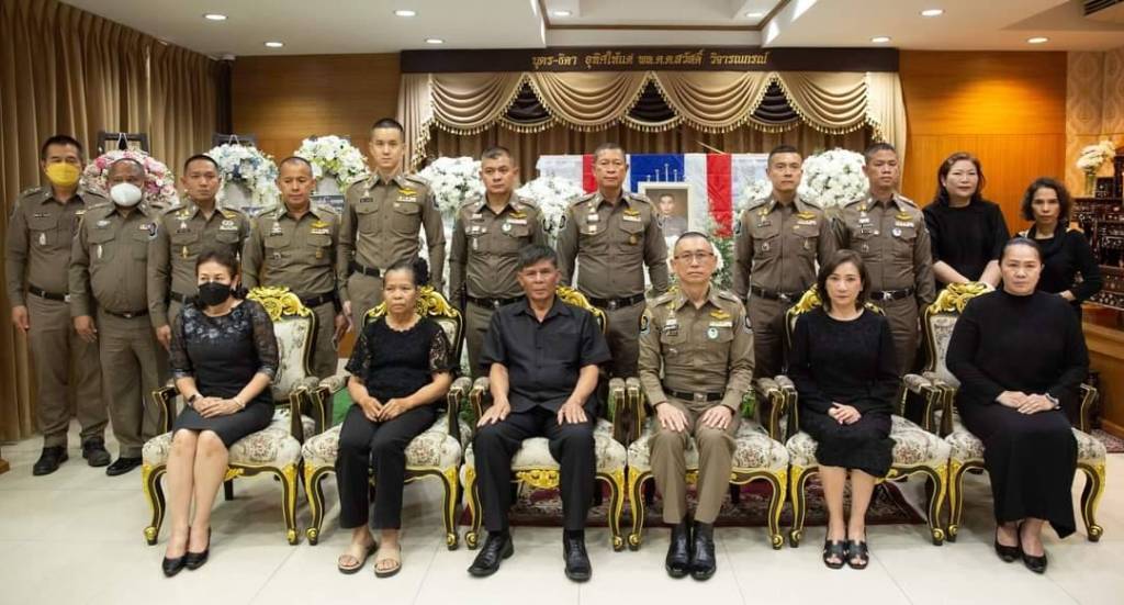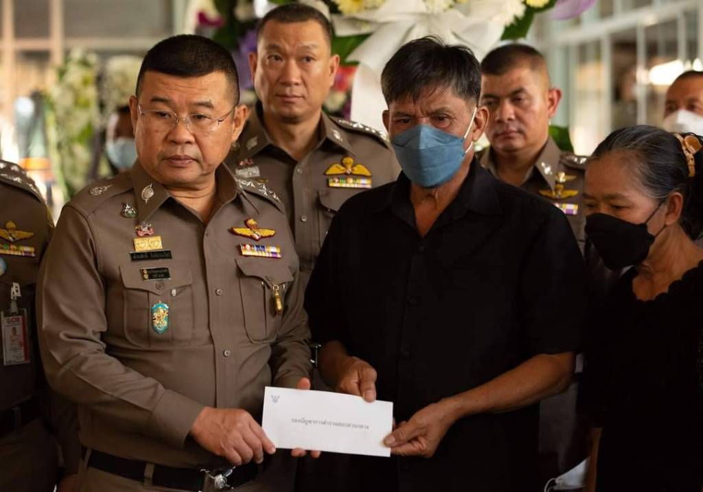 วันที่ 25 ก.พ.66 พล.ต.อ.ดำรงศักดิ์ กิตติประภัสร ผบ.ตร พร้อมด้วย คณะผู้บังคับบัญชา ได้เดินทางเข้าร่วมพิธีรดน้ำศพ และยังได้ร่วมเป็นเจ้าภาพในพิธีสวดพระอภิธรรมศพในช่วงค่ำของคืนแรก ณ วัดตรีทศเทพ พร้อมกับมอบเงินจากกองทุนช่วยเหลือ เงินสวัสดิการต่างๆ ของหน่วยงานต้นสังกัดของ ส.ต.อ.เศรษฐการ ลอยขามป้อม ให้แก่ครอบครัวของ ส.ต.อ.เศรษฐการ ลอยขามป้อม
