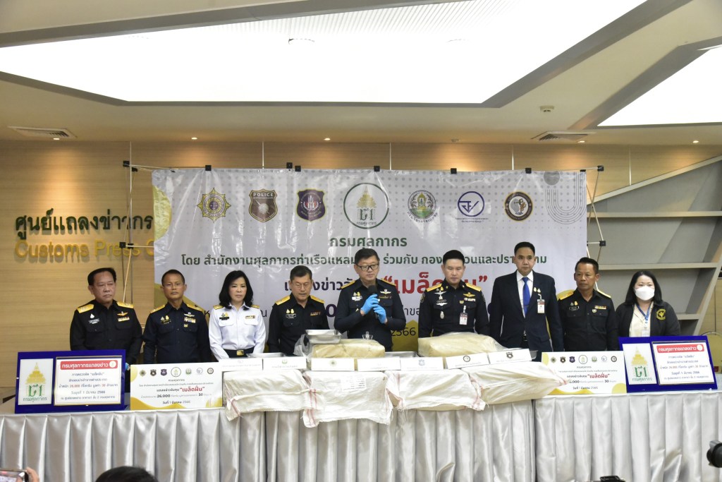 วันนี้ (1 มีนาคม 2566) เวลา 13.30 น. นายพชร อนันตศิลป์ อธิบดีกรมศุลกากร นายพงศ์เทพ บัวทรัพย์ รองอธิบดี รักษาการในตำแหน่งที่ปรึกษาด้านพัฒนาระบบควบคุมทางศุลกากร นางนันท์ฐิตา ศิริคุปต์ รองอธิบดีกรมศุลกากร พ.ต.ท.กิตติคุณ พ่วงนาคพันธุ์ ผู้อำนวยการส่วนปฏิบัติการข่าวและปราบปรามยาเสพติด 6 สำนักงานคณะกรรมการป้องกันและปราบปรามยาเสพติด (ป.ป.ส.) พ.อ.มารุต เปล่งขำ ผู้อำนวยการ กอง 12 ศูนย์รักษาความปลอดภัย กองบัญชาการกองทัพไทย นางสาววิลาสินี พุ่มสงวน เภสัชกรชำนาญการ สำนักงานคณะกรรมการอาหารและยา ร่วมกันแถลงข่าวการยึด “เมล็ดฝิ่น” ลักลอบนำเข้าจากต่างประเทศ ทางท่าเรือแหลมฉบัง น้ำหนัก 26,000 กิโลกรัม มูลค่า 30 ล้านบาท ณ ศูนย์แถลงข่าว ชั้น 2 กรมศุลกากร คลองเตย