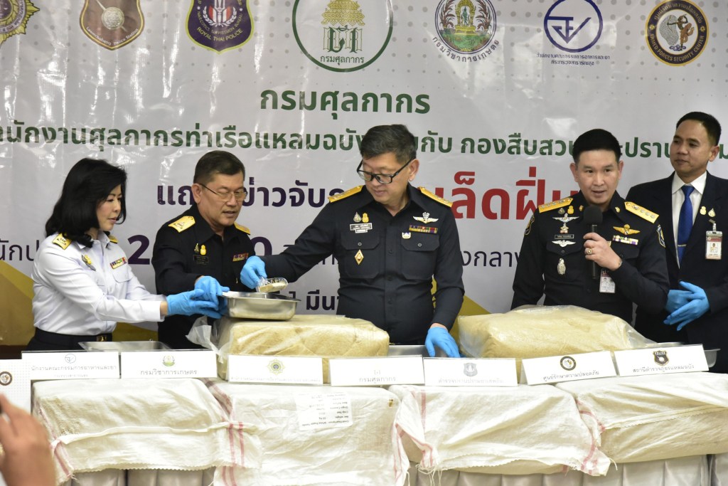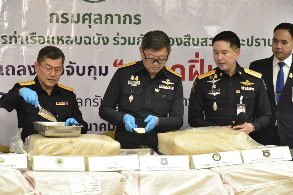 นายพชร อนันตศิลป์ อธิบดีกรมศุลกากร เปิดเผยว่า ตามที่พลเอกประยุทธ์ จันทร์โอชา นายกรัฐมนตรีและรัฐมนตรีว่าการกระทรวงกลาโหม มีนโยบายเดินหน้าปราบปรามยาเสพติดทั้งการผลิต การนำเข้า การนำผ่าน และการลักลอบจำหน่ายและสั่งการให้ทุกหน่วยงานที่เกี่ยวข้องบูรณาการการทำงานร่วมกัน เพื่อปราบปรามยาเสพติดอย่างเข้มงวด ด้านกระทรวงการคลัง โดยนายอาคม เติมพิทยาไพสิฐ รัฐมนตรีว่าการกระทรวงการคลัง และนายสันติ พร้อมพัฒน์ รัฐมนตรีช่วยว่าการกระทรวงการคลังจึงสั่งการให้หน่วยงานในสังกัดกระทรวงการคลัง เพิ่มความเข้มงวดและเดินหน้าปราบปรามการลักลอบนำยาเสพติดเข้ามาในราชอาณาจักรทุกเส้นทาง กรมศุลกากรจึงเพิ่มการเฝ้าระวังการลักลอบนำยาเสพติดเข้ามาในราชอาณาจักร ทั้งทางบก ทางเรือและทางอากาศ ซึ่งที่ผ่านมามีการลักลอบนำยาเสพติดเข้ามาและออกนอกราชอาณาจักรอย่างต่อเนื่อง
