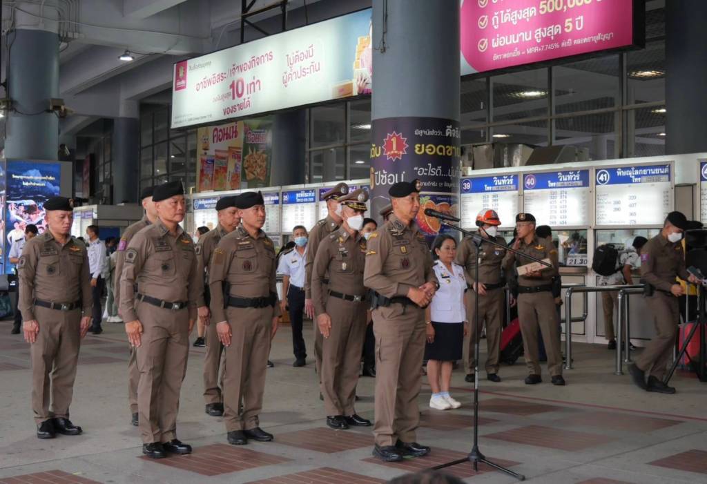 วันนี้(พุธที่ 12 เม.ย.66) เวลา 18.00 น. พล.ต.อ.ต่อศักดิ์ สุขวิมล รอง ผบ.ตร. พร้อมด้วย พล.ต.ท.สําราญ นวลมา ผู้ช่วย ผบ.ตร., พล.ต.ต.จิรสันต์ แก้วแสงเอก รอง ผบช.น., พล.ต.ต.สุวิชชา จินดาคำ ผบก.จร., พล.ต.ต.อรรถพล อนุสิทธิ์ ผบก.น.2, พล.ต.ต.ภานพ วรธนัชชากุล ผบก.สปพ. และเจ้าหน้าที่ตำรวจ บก.จร. ร่วมตรวจเยี่ยม และมอบนโยบาย ข้าราชการตํารวจที่ปฏิบัติหน้าอํานวยความสะดวกและให้บริการประชาชน ช่วงเทศกาลสงกรานต์ 2566 ณ สถานีขนส่งผู้โดยสารกรุงเทพ (จตุจักร) หมอชิต/ทีมประชาสัมพันธ์ บช.น.