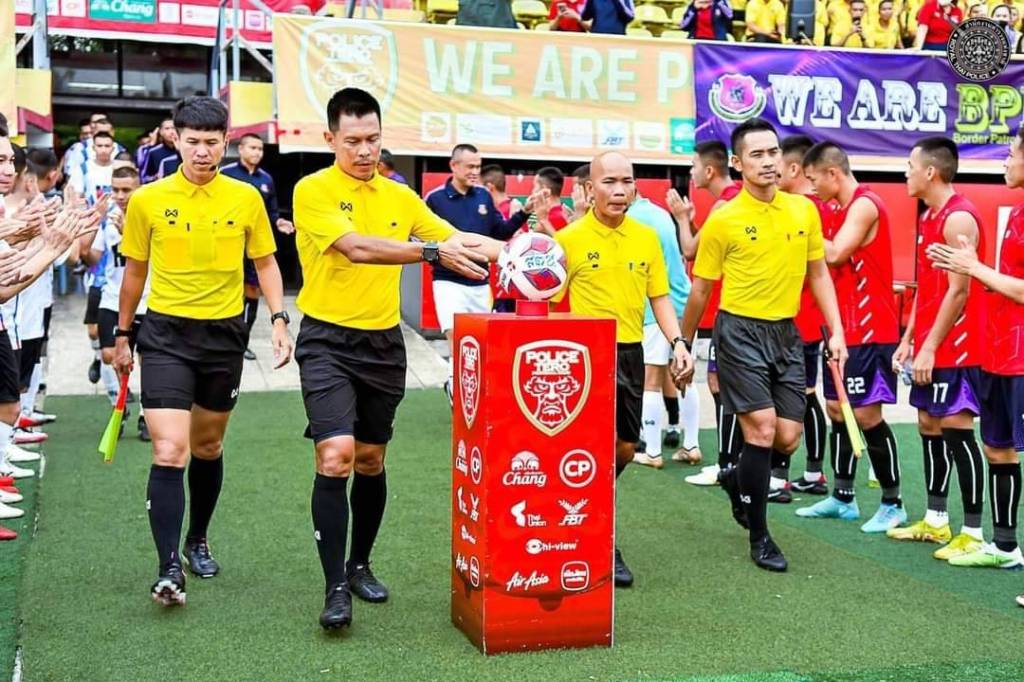 พล.ต.อ.ดำรงศักดิ์ กิตติประภัสร์ ผบ.ตร. , พล.ต.อ.กิตติ์รัฐ พันธุ์เพ็ชร์ รอง ผบ.ตร./ประธาน ก.ก.ป.ฟุตบอล ตร. และ พล.ต.ท.ดร.ธัชชัย ปิตะนีละบุตร ผู้ช่วย ผบ.ตร./รองประธาน ก.ก.ป.ฟุตบอล ตร. พร้อมผู้บังคับบัญชาระดับสูงของ ตร. ร่วมชมการแข่งขันฟุตบอลคู่ชิงชนะเลิศ ระหว่าง ตชด. กับ นขต. ณ สนามฟุตบอลบุณยะจินดา สโมสรตำรวจ