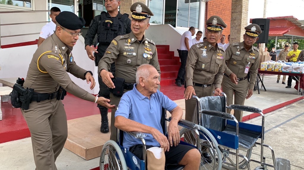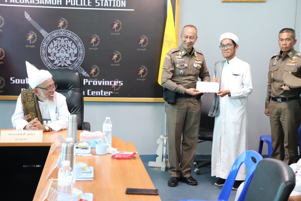 เมื่อวันที่ 14 ก.ค. พล.ต.อ.ต่อศักดิ์ สุขวิมล รอง ผบ.ตร. พล.ต.ท.นันทเดช ย้อยนวล ผบช.ภ.9 พล.ต.ต.สิทธิชัย โล่กันภัย รอง ผบช.ภ.7, พล.ต.ต.ศิร์ธัชเขต ครูวัฒนเศรษฐ์ รอง ผบช.ก. พล.ต.ต.กฤษฏา แก้วจินดี รอง ผบช.ภ.9 พล.ต.ต.อนุรุธ อิ่มอาบ ผบก.ภ.จว.นราธิวาส พ.ต.อ.ชนกฤดิ พงษ์ศิริ ผกก.7 บก.ทล. เดินทางมาประชุมตรวจเยี่ยมและมอบของบำรุงขวัญให้ข้าราชการตำรวจและพี่น้องประชาชน ในพื้นที่จังหวัดชายแดนภาคใต้ มีความห่วงใยในสถานการณ์และความปลอดภัยของเจ้าหน้าที่ตำรวจและพี่น้องประชาชนในพื้นที่จังหวัดปัตตานี จังหวัดนราธิวาส พร้อมทั้งร่วมกันทำกิจกรรมจิตอาสาพัฒนาศาสนสถานวัดราษฎร์บูรณาราม หรือ วัดช้างให้ ริมทางรถไฟสายหาดใหญ่-สุไหงโก-ลก ตำบลควนโนรี อำเภอโคกโพธิ์ จังหวัดปัตตานี ร่วมกันทำกิจกรรมจิตอาสาพัฒนาศาสนสถาน ทำความสะอาด เก็บกวาดขยะ ตัดหญ้า ตัดแต่งกิ่งไม้ ปรับปรุงภูมิทัศน์ บริเวณโดยรอบวัด เพื่อให้มีความสะอาด สวยงาม ตรวจเยี่ยมกำลังพลในสังกัดสถานีตำรวจทางด่วน 5 กองกำกับการ 7 และสภ.ปะลุกาสาเมาะ พร้อมทั้งประชุมรับฟังแลกเปลี่ยนความคิดเห็นของผู้นำศาสนาชาวมุสลิม และมอบเงินให้กับ วัด ชุมชน มัสยิด และเจ้าหน้าที่ตำรวจในพื้นที่ เพื่อเป็นขวัญกำลังใจ
