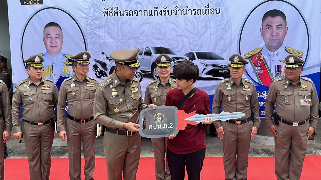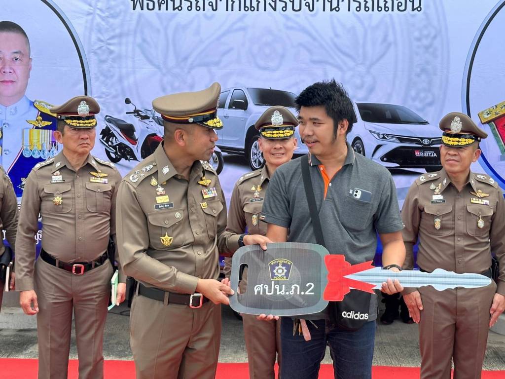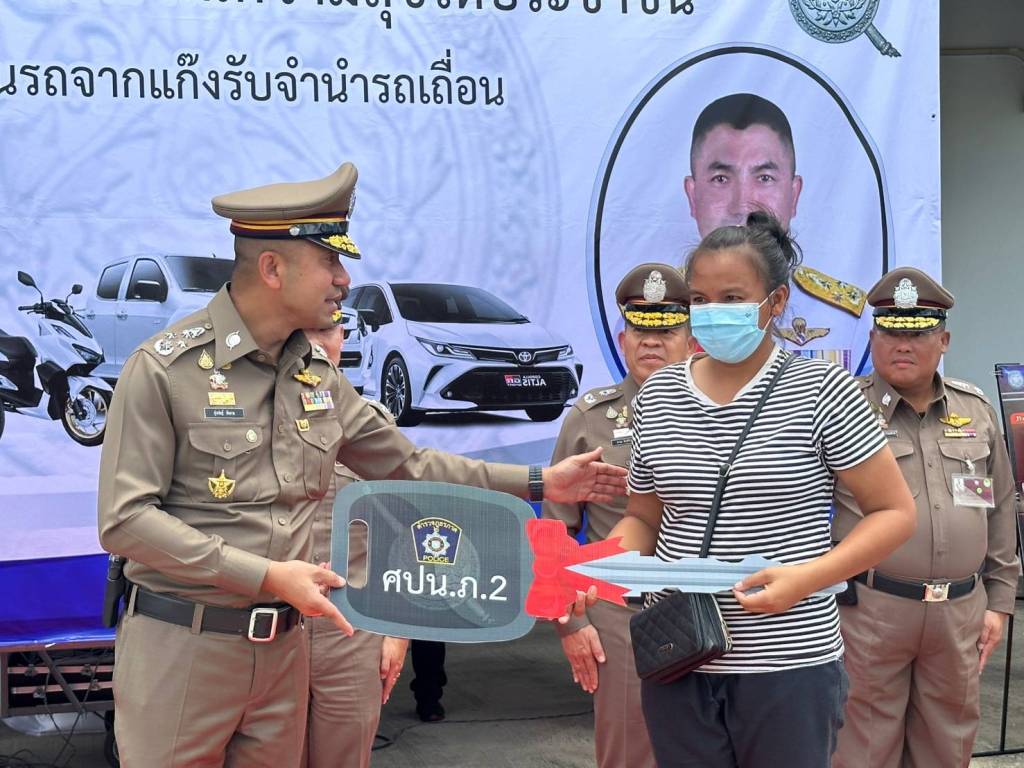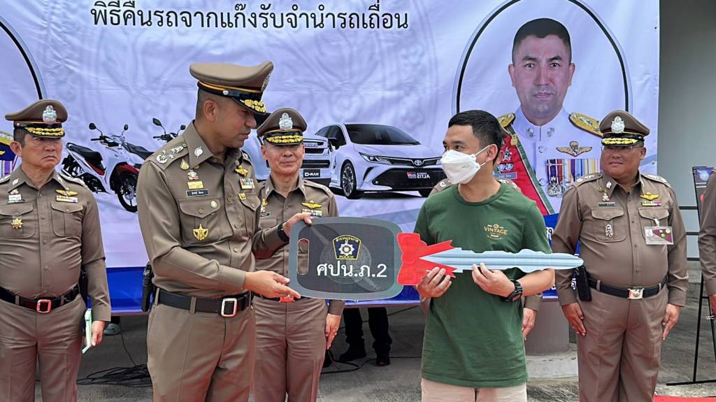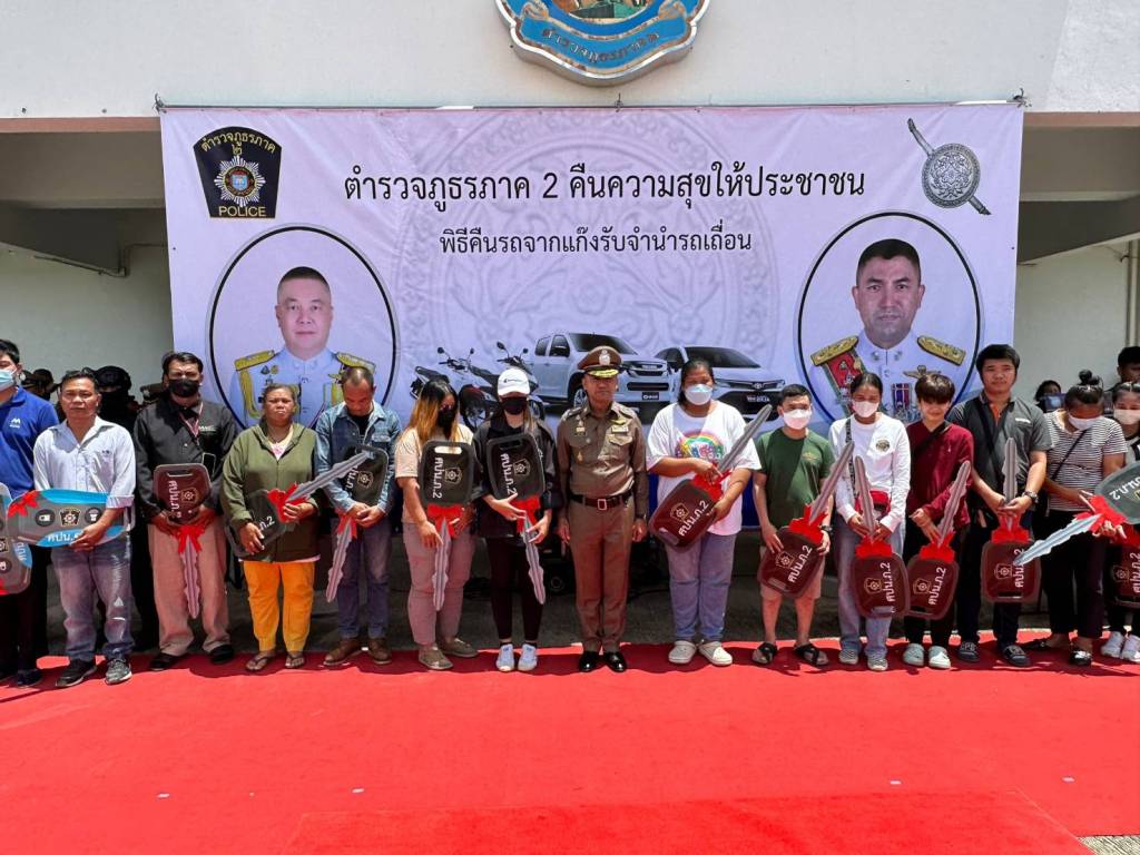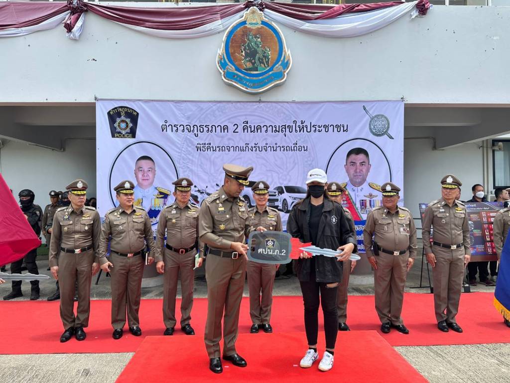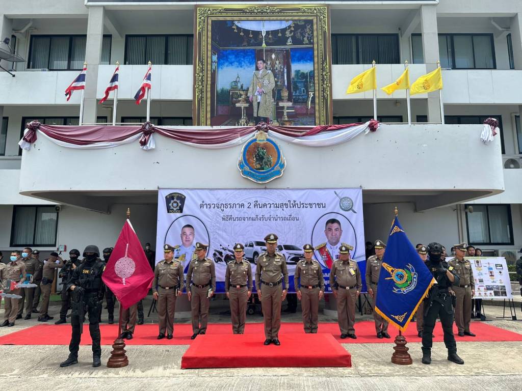 ในวันนี้ (13 ก.ย.66) พล.ต.อ.สุรเชษฐ์ หักพาล รอง ผบ.ตร./ผอ.ศปน.ตร. พร้อมด้วย พล.ต.ท.อิทธิพล อิทธิสารรณชัย ผบช.ภ.2/ผอ. ศปน.ภ.2 , พล.ต.ต.ชัยต์พจน์ สูวรรณรักษ์ รอง ผบช.ภ.2/รอง ผอ.ศปน.ภ.2 ร่วมกับเจ้าหน้าที่ ศปน.ตร. และ ศปน.ภ.2 ดำเนินการคืนรถยนต์และรถจักรยานยนต์ของกลางให้กับผู้เสียหายซึ่งเป็นเจ้าของรถที่แท้จริง ซึ่งได้มีการทยอยส่งมอบคืนไปแล้วบางส่วน เป็นรถยนต์ 67 คัน และรถจักรยานยนต์ 39 คัน ในวันนี้มีการส่งคืนรถของกลางที่เหลือทั้งหมด เป็นรถยนต์จำนวน 25 คัน และรถจักรยานยนต์จำนวน 41 คัน เพื่อเป็นการคืนความสุขให้แก่ประชาชนที่ได้รับความเดือดร้อนจากการกู้หนี้นอก