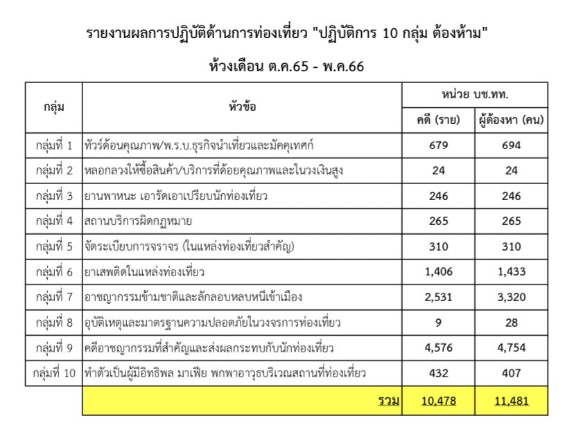 เมื่อวันที่ 16 มิถุนายน 2566 เวลา 1700 น. ณ กองบัญชาการตำรวจท่องเที่ยว พล.ต.ท.สุคุณ พรหมายน ผบช ทท ได้มอบหมายให้ พล.ต.ต.อภิชาติ สุริบุญญา โฆษกกองบัญชาการตำรวจท่องเที่ยวแจ้งต่อสื่อมวลชนว่า