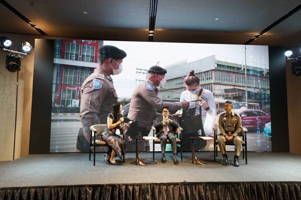 เนื่องจากในรอบสัปดาห์ มีการจับกุมมิจฉาชีพรับจ้างแก็งคอลเซ็นเตอร์ (Call Center)นำเครื่องจำลองสถานีฐาน (False Base Station) ส่งข้อความสั้น(SMS) สวมรอยช่องทางปกติของสถาบันการเงิน และหน่วยงานอื่น หลอกลวงผู้เสียหายกดลิงก์เพิ่มเพื่อนไลน์และหลอกให้โหลดแอปพลิเคชันควบคุมเครื่องโทรศัพท์แล้วโอนเงินออกจาก Mobile Banking ของผู้เสียหาย พล.ต.อ.ดำรงศักดิ์ กิตติประภัสร์ ผบ.ตร. และ พล.ต.อ.รอย อิงคไพโรจน์ รอง ผบ.ตร. เป็นห่วงพี่น้องประชาชน ที่อาจจะตกเป็นเหยื่อมิจฉาชีพรายอื่นสวมรอยส่งข้อความสั้น(SMS) ในลักษณะเดียวกัน จึงมอบหมายให้ พล.ต.อ.สมพงษ์ ชิงดวง ที่ปรึกษาพิเศษ ตร. หัวหน้าคณะทำงานสร้างเสริมภูมิคุ้มกันต้านภัยอาชญากรรมทางเทคโนโลยี และ พล.ต.ท.ธัชชัย ปิตะนีละบุตร ผู้ช่วย ผบ.ตร. พร้อมด้วยคณะทำงาน แถลงข่าวเตือนภัย เมื่อวันที่ 30 พ.ค.2566 เวลา 13.30 น. ณ สำนักงานตำรวจแห่งชาติ เนื่องจากยังมีการส่งลิงก์ในลักษณะดังกล่าวอยู่ และมีการส่งในรูปแบบอื่นๆ อีกจำนวนมาก