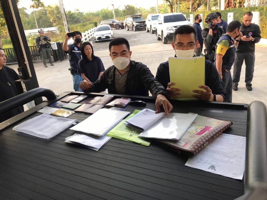 2565 ในความผิดฐาน “ ร่วมกันเป็นผู้จัดให้มีการเล่นหรือทำอุบายล่อ ช่วยประกาศโฆษณาหรือชักชวนโดยทางตรงหรือทางอ้อมให้ผู้อื่นเข้าเล่นหรือเข้าพนันในการเล่นซึ่งมิได้รับอนุญาตจากเจ้าพนักงาน และร่วมกันฟอกเงิน ” ที่ห้องพักเลขที่ 328 อพาร์ตเม้นต์แห่งหนึ่ง ซ.เพชรเกษม 48 แขวงบางด้วน เขตภาษีเจริญ กรุงเทพฯ และจับนายกิตติกร นายรุ่งอรุณ และ น.ส.ทองทัย ซึ่งเป็นเจ้าของบัญชีม้า ตามหมายจับของศาลอาญา ที่ 2781 – 2783/2565 ลงวันที่ 9 ธ.ค.2565 ในความผิดฐาน “ ร่วมกันเป็นผู้จัดให้มีการเล่นหรือทำอุบายล่อ ช่วยประกาศโฆษณาหรือชักชวนโดยทางตรงหรือทางอ้อมให้ผู้อื่นเข้าเล่นหรือเข้าพนัน ในการเล่นซึ่งมิได้รับอนุญาตจากเจ้าพนักงาน และร่วมกันฟอกเงิน ” ได้ที่อ.แม่สาย จ.เชียงราย