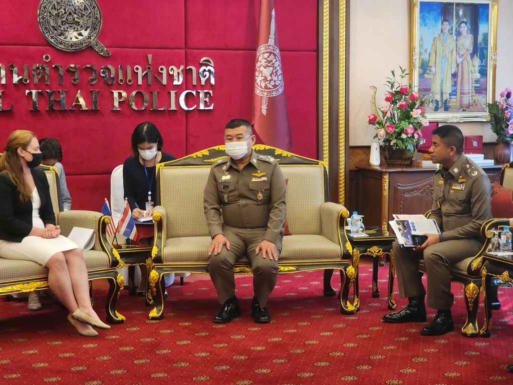 ในการนี้ พล.ต.อ.ดำรงศักดิ์ กิตติประภัสร์ ผบ.ตร. และ พล.ต.อ.สุรเชษฐ์ หักพาล รอง ผบ.ตร./ผอ.ศพดส.ตร. พร้อมด้วยคณะผู้แทนไทย ได้พาคณะผู้แทนจากสหรัฐอเมริกาเข้าเยี่ยมชมการทำงานภายในศูนย์ ศพดส.ตร. ผลการปฏิบัติในภาพรวมของปี 2565 รวมทั้งนำเสนอวิธีการทำงานของชุดปฏิบัติการ TICAC เริ่มตั้งแต่การรับข้อมูลเบาะแส จนถึงการแจกจ่ายงานไปยังชุดปฏิบัติการทั่วประเทศ และยังได้จัดแสดงอุปกรณ์เครื่องมือเทคโนโลยีที่ชุดปฏิบัติการ TICAC ได้นำมาใช้ในการตรวจสอบวิเคราะห์ข้อมูล เพื่อช่วยในการปราบปราบการล่วงละเมิดทางเพศต่อเด็กและเยาวชนทางอินเตอร์เน็ต ซึ่งคณะผู้แทนจากสหรัฐอเมริกาให้ความสนใจเป็นอย่างยิ่ง โดยเฉพาะวิธีการทำงานที่ทำให้ผลการปฏิบัติในด้านการดำเนินคดี และปราบปรามการค้ามนุษย์เพิ่มขึ้นแบบก้าวกระโดด นอกจากนี้ยังพร้อมที่จะให้ความร่วมมือกับประเทศไทย ในการบูรณาการร่วมกันป้องกันและปราบปรามการค้ามนุษย์ในระดับประเทศ เพื่อการแก้ปัญหาอย่างยั่งยืนต่อไป
