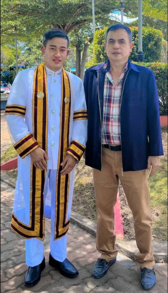 “ป๋าลี ยะลา ” ร.ต.ท.เกียรติศักดิ์ มูดอ หัวหน้าค่ายมวยเอราวัณ จากจังหวัดยะลา ร่วมแสดงความยินดี ถ่ายรูปกับลูกศิษย์คนเก่ง” แสนซน เอราวัณ “ที่ได้ศึกษาเล่าเรียนจบปริญญาตรีสาขาเทคโนโลยีไฟฟ้า วิทยาลัยเทคนิคยะลา จ.ยะลา และได้รับปริญญาที่วิทยาลัยการอาชีวศึกษาปทุมธานี เมื่อวันที่31สิงหาคม 2565 ที่ผ่านมา