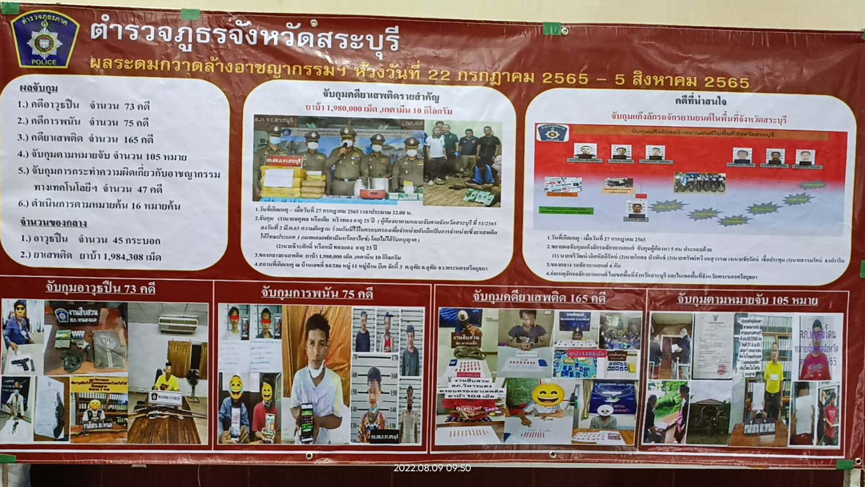 ภาค 1 และมีพิธีปล่อยแถวระดมกวาดล้างอาชญากรรมไปเมื่อ วันที่ 22 กรกฎาคม 2565 ที่ผ่านมานั้น ผลการ