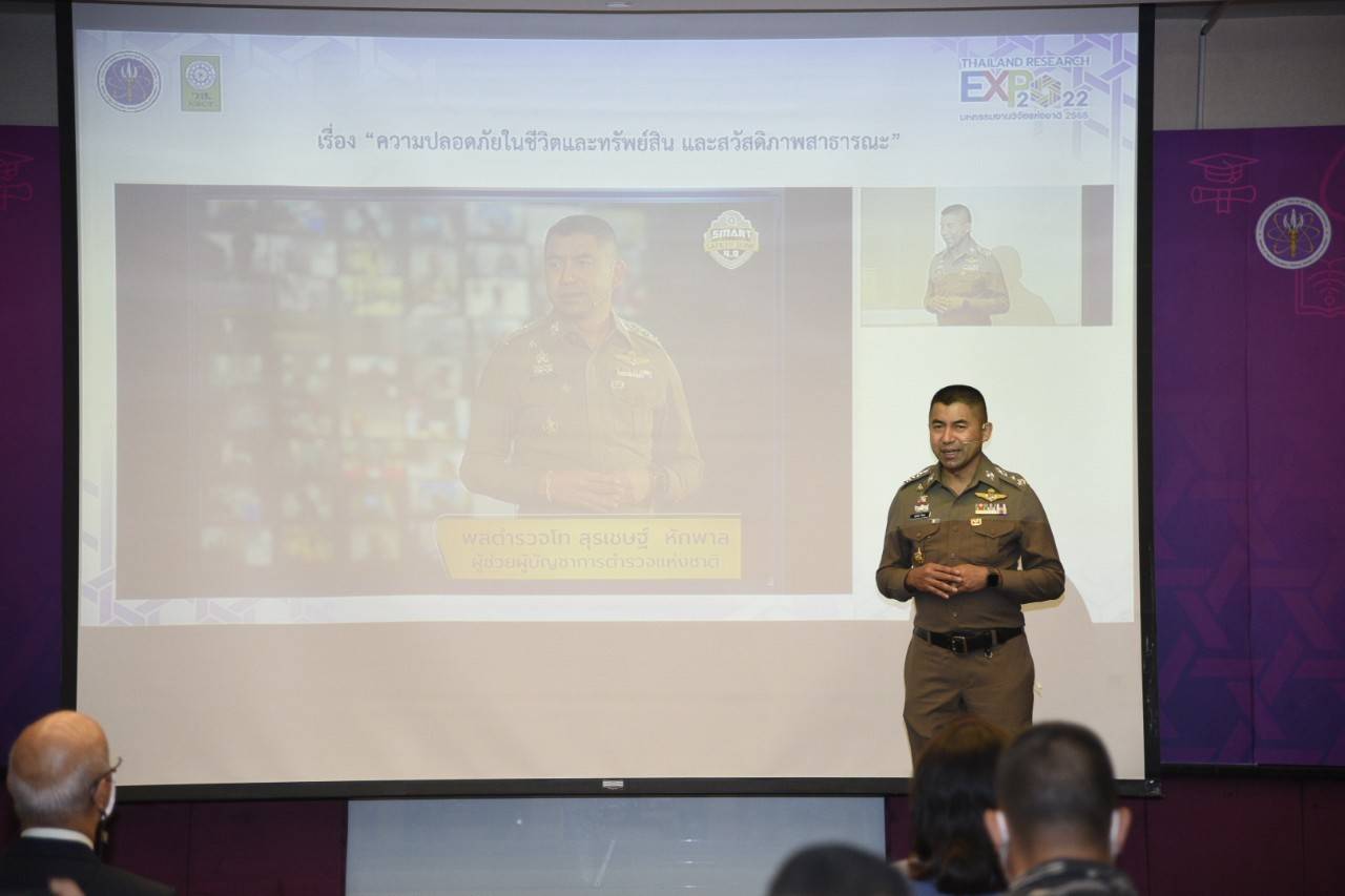 วันที่ 4.ส.ค.ที่ห้อง Lotus 7 ชั้น 22 โรงแรมเซ็นทาราแกรนด์ และบางกอกคอนเวนชั่นเซ็นเตอร์ เซ็นทรัลเวิลด์ กรุงเทพฯ พล.ต.ท.สุรเชษฐ์ หักพาล ผู้ช่วย ผบ.ตร. เป็นวิทยากรการปาฐกถาพิเศษ เรื่อง “Smart Safety Zone 4.0 นวัตกรรมความปลอดภัย เพื่อการป้องกันอาชญากรรม” ในงาน มหากรรมงานวิจัยแห่งชาติ 2565