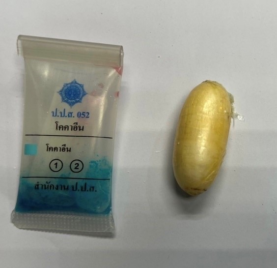 1.1 เมื่อวันที่ 9 มิถุนายน 2565 ด่านศุลกากรท่าอากาศยานภูเก็ต ตรวจค้นสัมภาระผู้โดยสารที่เดินทางมาจากต่างประเทศ เบื้องต้นไม่พบสิ่งผิดกฎหมายแต่มีข้อพิรุธที่อาจจะลักลอบกลืนยาเสพติด จึงนำตัวไปเอกซเรย์ร่างกายที่โรงพยาบาลถลาง จังหวัดภูเก็ต จากการตรวจสอบภาพเอกซเรย์ พบสิ่งแปลกปลอมรูปร่างทรงกลมและทรงรีเป็นจำนวนมากในช่องท้อง ผลการตรวจสอบสิ่งแปลกปลอมดังกล่าว พบเป็นยาเสพติดให้โทษประเภท 2 โคคาอีน จำนวนรวม 115 ก้อน น้ำหนักรวมสิ่งห่อหุ้ม 1.49 กิโลกรัม มูลค่า 4.47 ล้านบาท