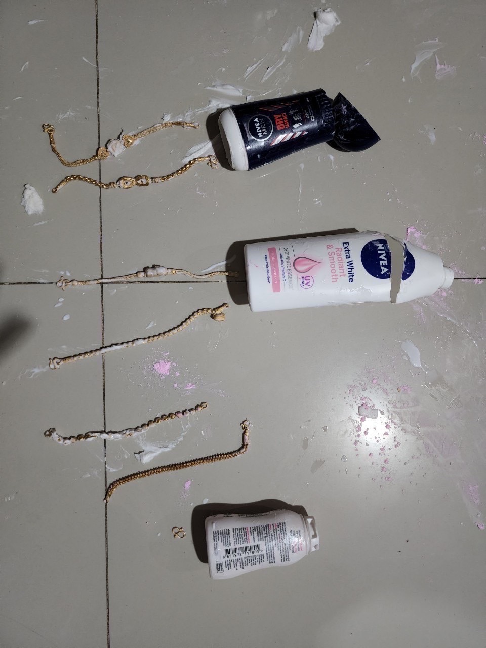4.สร้อยข้อมือทองคำจี้เลข 8 พบในขวดโลออนครีม NIVEA จำนวน 1 เส้น